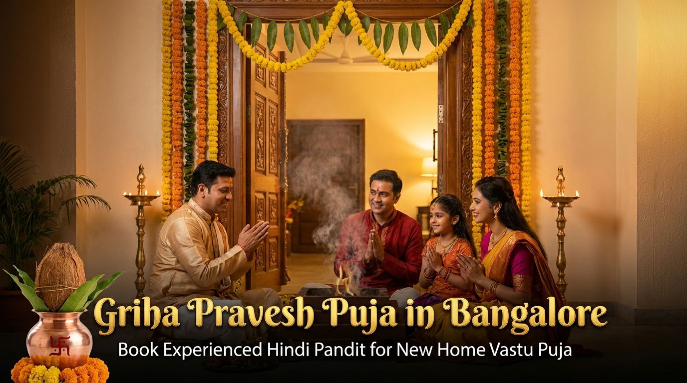We help families across Bangalore book Griha Pravesh, Satyanarayan Puja, marriage rituals, baby ceremonies, graha shanti puja, office puja, bhumi puja, Shradh, Antim Sanskar, and many other Hindu rituals with clear guidance from Subodh Pandey.